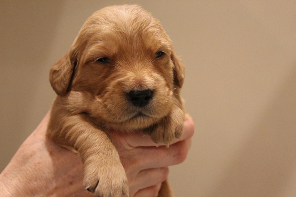 At the end of January our Golden Retriever Chilli whelped a gorgeous litter of 9 puppies, 6 girls 3 males. The father is our handsome male Woody. This is a repeat mating as the last litter are doing so well with their families. Woody and Chilli are similar is size, both affectionate and have been easy to train. They’re both the working type Goldens so full of energy and always ready for an adventure! Pups are expected to be lively, intelligent and affectionate.