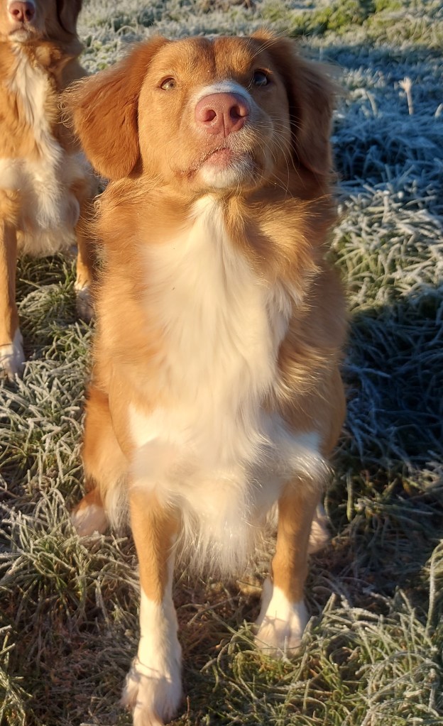 Polly is an energetic, exuberant, cheeky character who is almost always smiling! She’s a bright and very playful character. She has a nice broad head and is a well built dog. She is a daughter of Amber and Fergus.